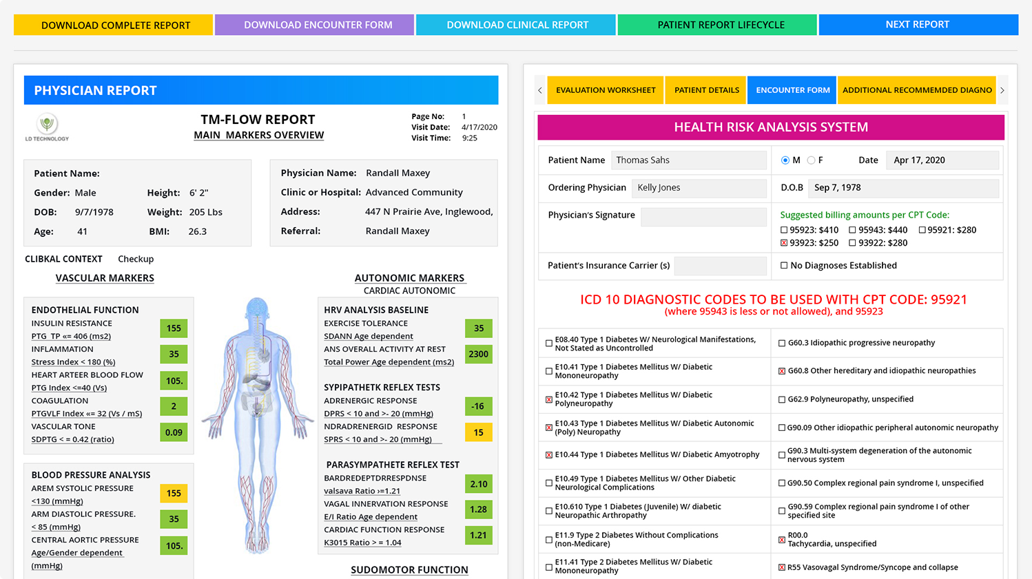 The meticulous information-processing algorithm within the PECE Virtual Platform identifies medical markers within the ANS clinical report to establish medical necessity for 21+ potential additional diagnostic tests that the physician can order.