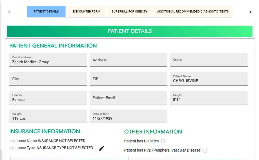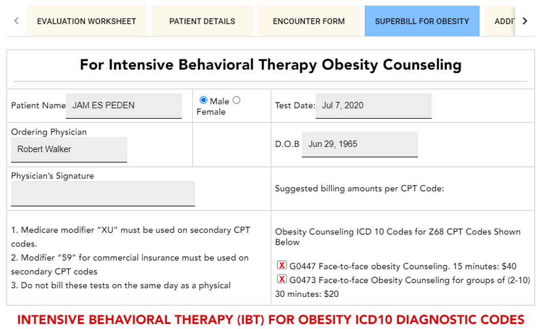 IBT Form or superbill for obesity