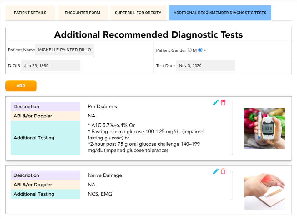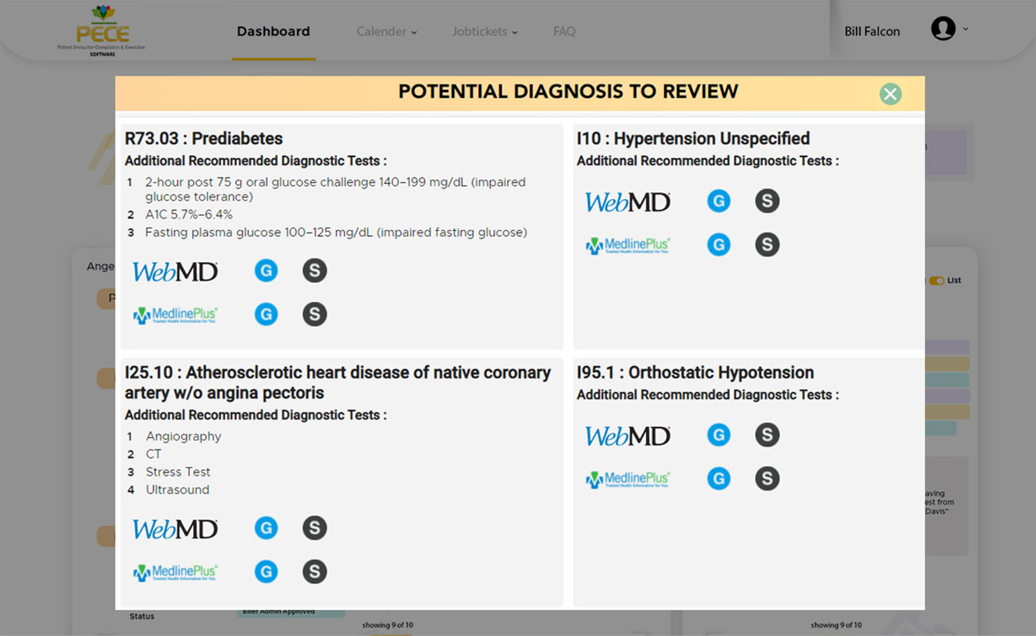 ICD 10 diagnostic codes are attached to additional recommended diagnostic tests, an updated feature that facilitates accurate patient diagnosis followed by general and specific links generated from webMD and medlineplus which are approved by the US national library of medicine.
