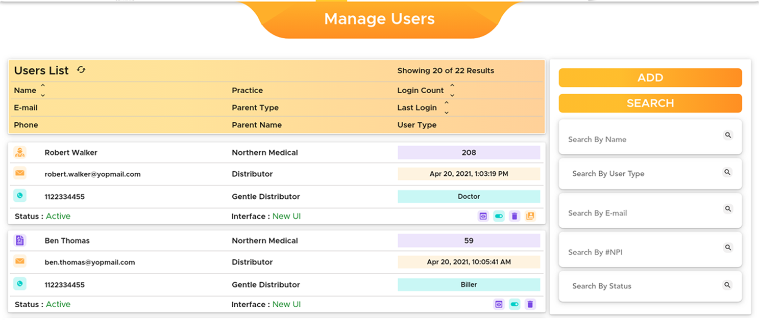 Practices have the ability to add related users under them and manage the specific activities for different users based in different locations. This added facility empowers a practice to gain a pivotal position to centrally manage all the users under various locations.